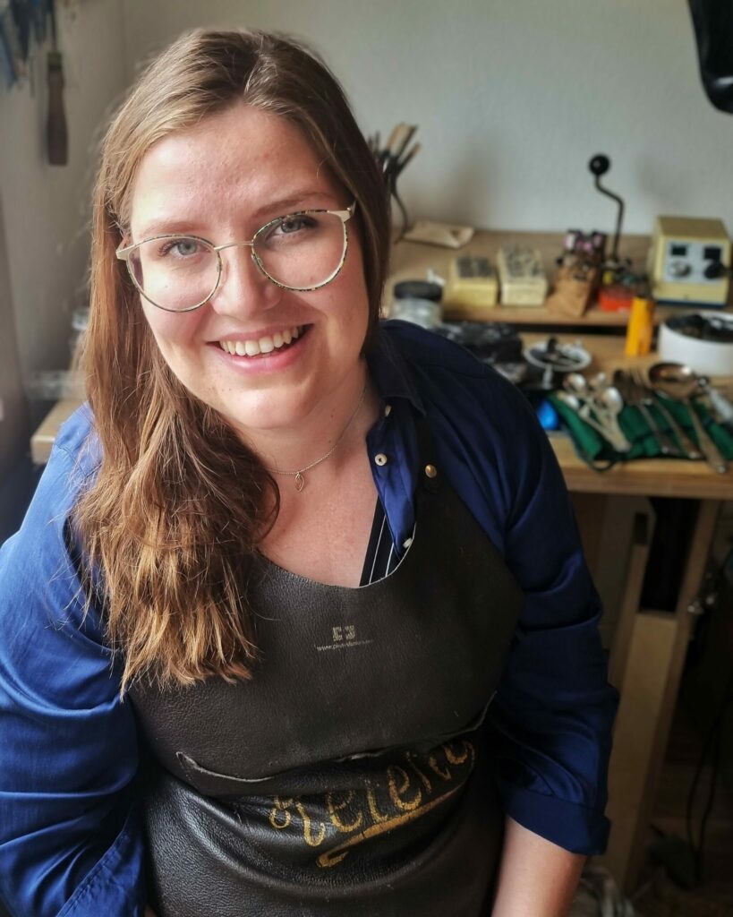 Gullokk er gullsmed Helene Lindberg, som håndlager moderne julepynt og smykker og av sølv og gull i verkstedet på Byåsen. På julemarkedet kan du finne glitrende gaver til deg selv eller noen du er glad i
