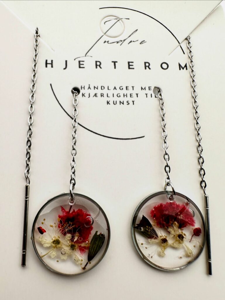 Hvert design starter med ekte, tørkede blomster plukket fra lokale enger og marker, omsluttet i krystallklar resin for å bevare deres unike skjønnhet.
