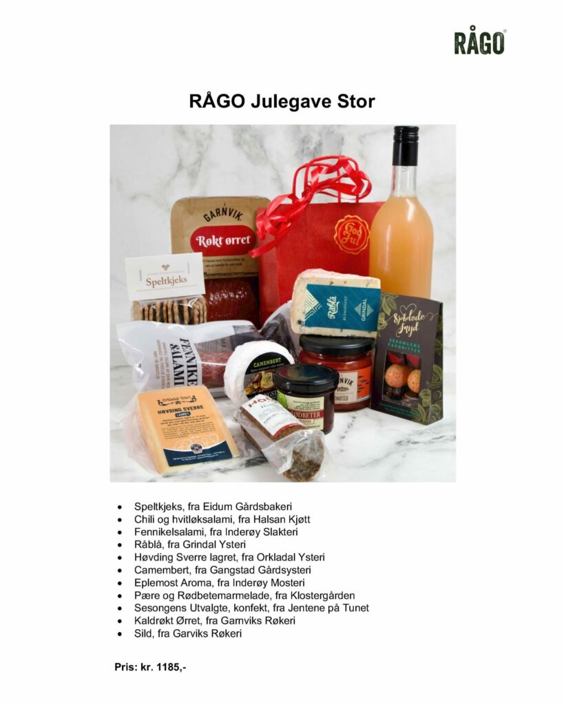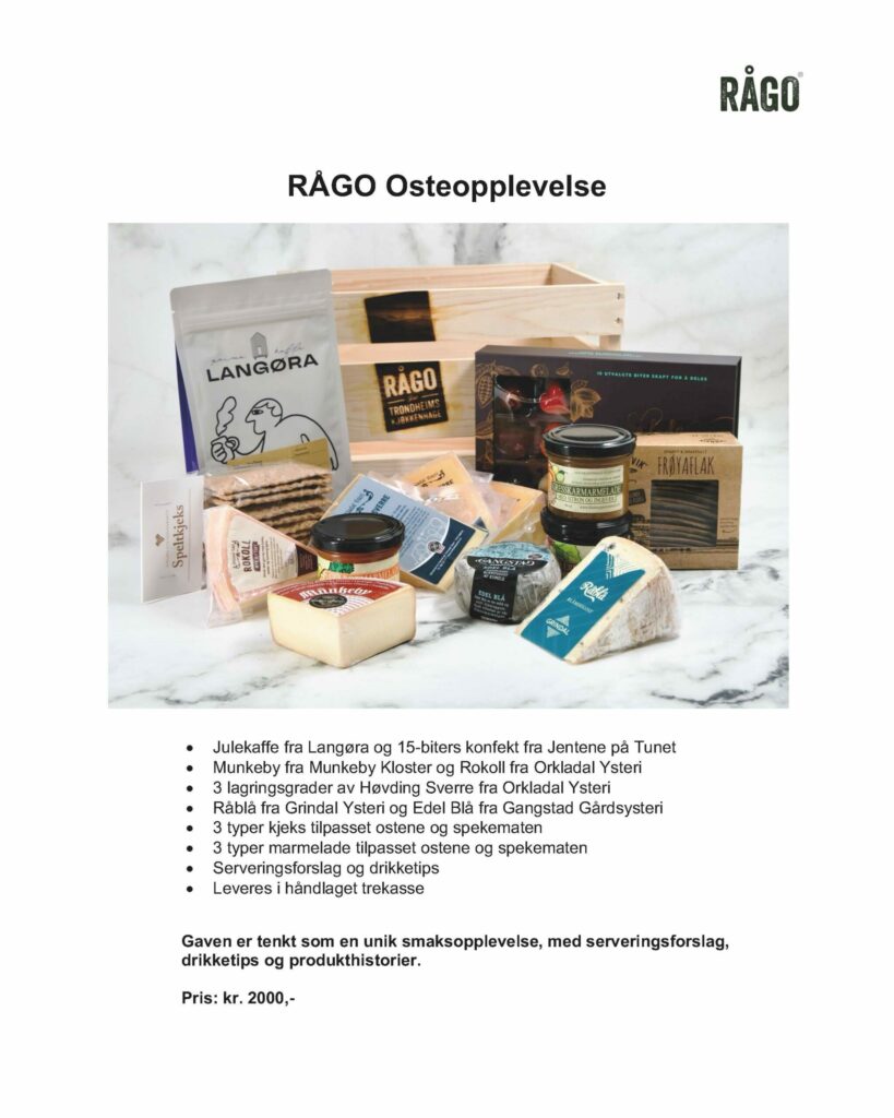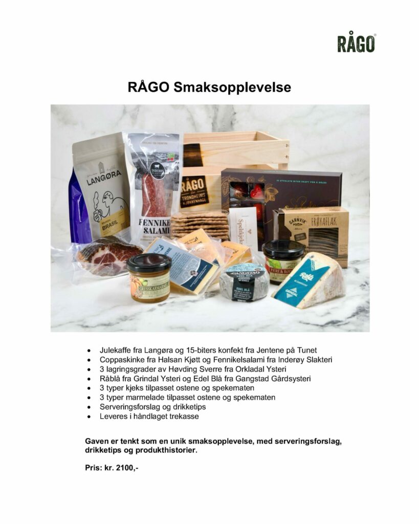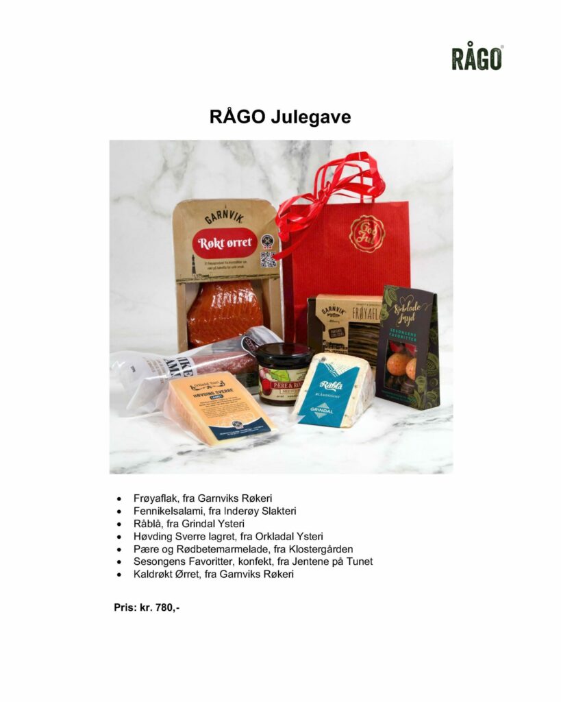 RÅGO er en trøndersk matkasse med lokalmat og frostagrønnsaker som er inne i sitt 12-ende driftsår. Hvert år på denne tiden tilbyr de i tillegg til matkassene et stort utvalg av julekasser og lokalmat som kan kjøpes i ‘løs vekt’. På julemarkedet på Pirsenteret kan vi tilby et stort utvalg av både ost, spekemat og ferdig gavealternativer.